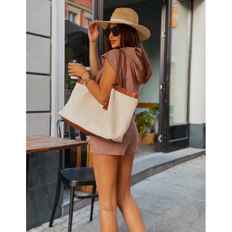 LaBalancia Komplet dresowy damski bluza i spodenki cappuccino