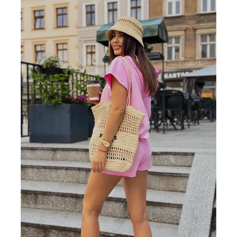 - Szorty również posiadają surowo cięte nogawki, które podkreślają nowoczesny styl kompletu.