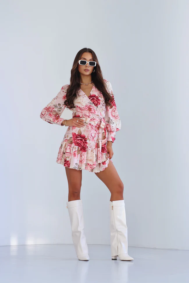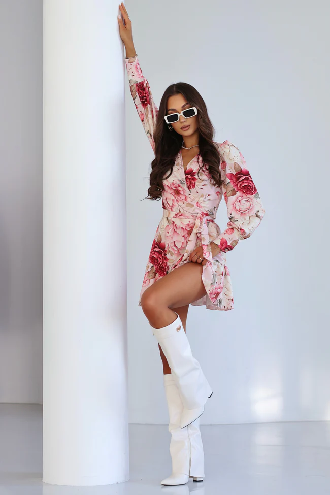 LaBalancia Sukienka ANNA kopertowa Light Bouquet kwiaty pudrowy róż