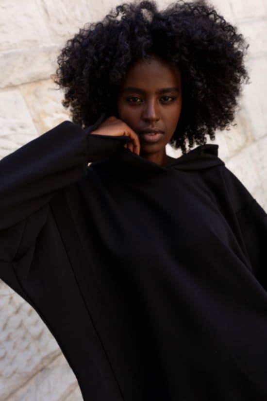 Luźna bluza z kapturem wyróżnia się: