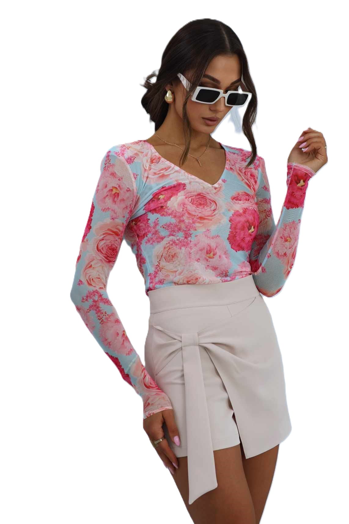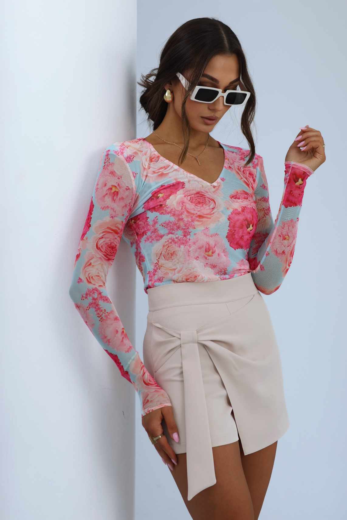 Model wyróżnia się ozdobnym wiązaniem na stałe z przodu, które dodaje całości wyjątkowego charakteru i podkreśla talię.