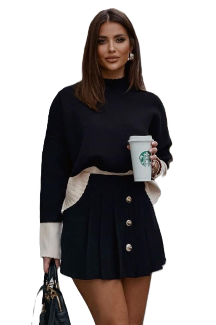 LaBalancia sweter damski półgolf czarny beżowy