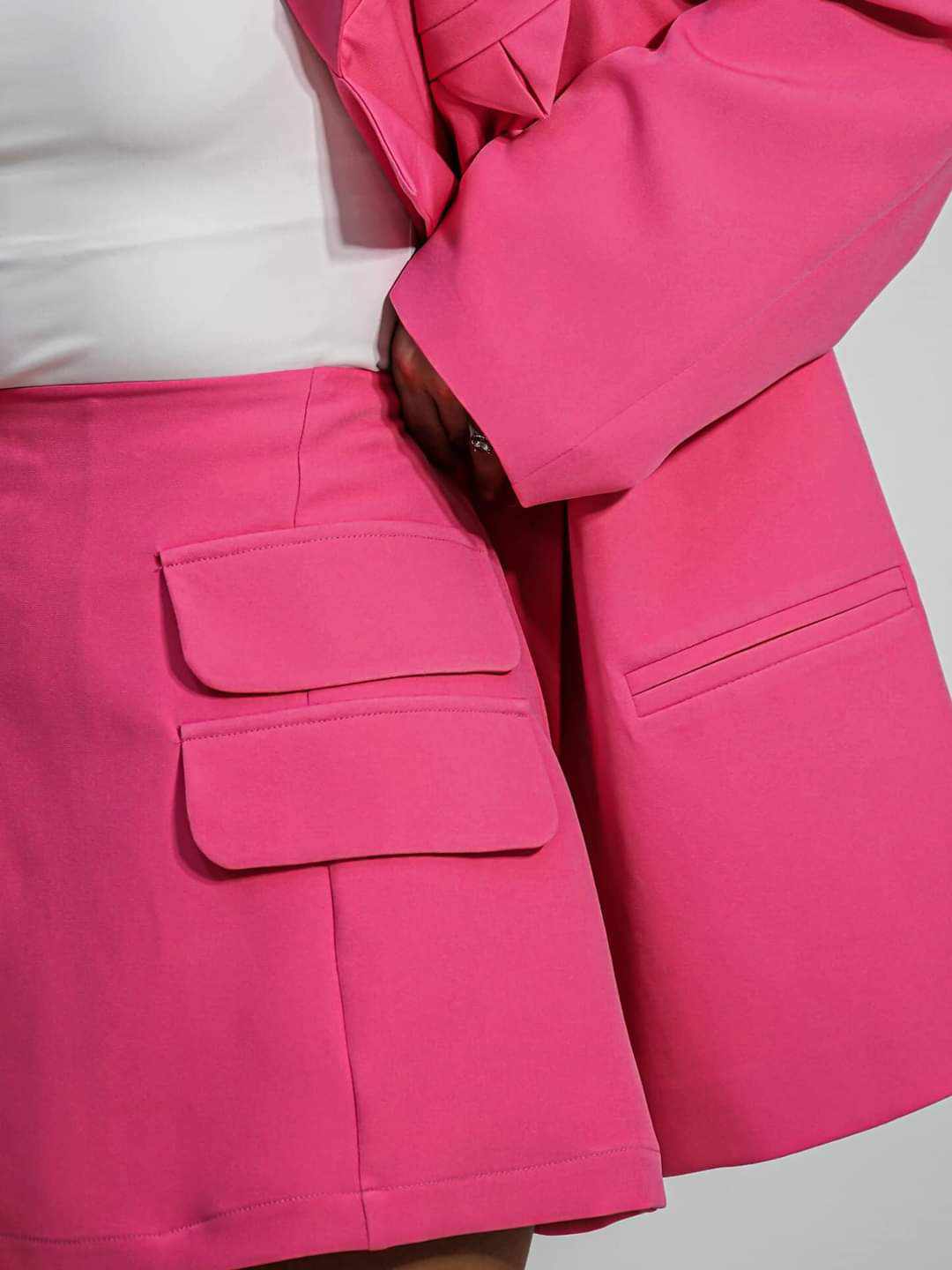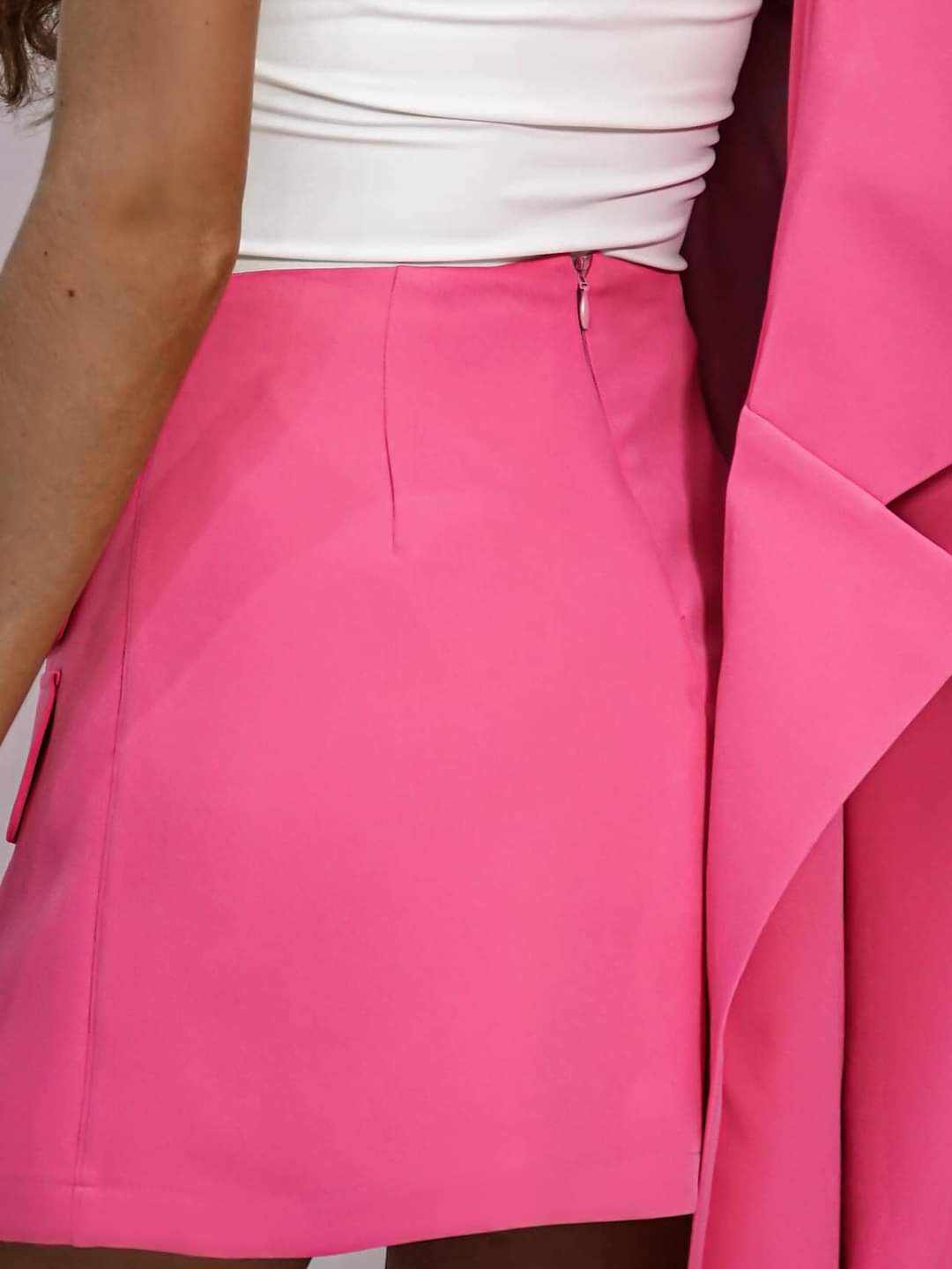 Spódnico-spodenki w kolorze barbie róz z delikatnym rozcięciem to kobieca kwintencja smaku .