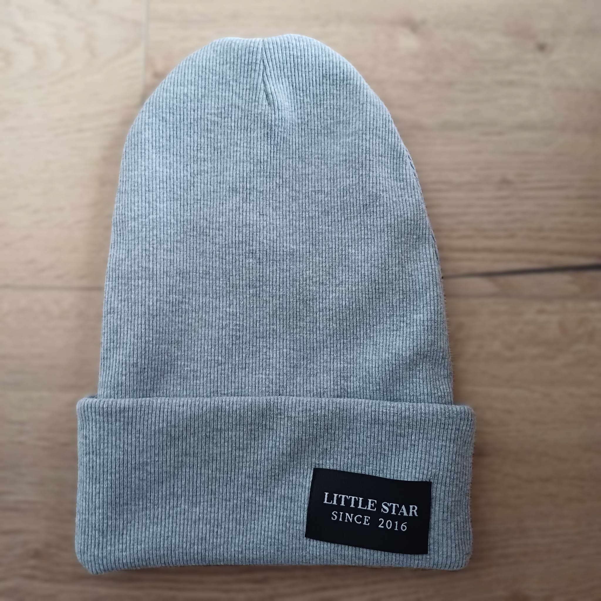 Czapka dziecięca w kolorze szarym jest miękka i wygodna, wykonana z prążkowanego podwójnego materiału, idealnego dla delikatnej skóry dziecka.