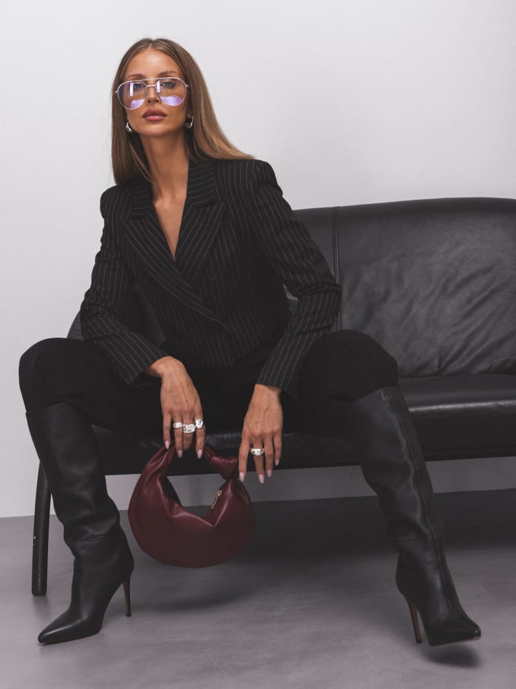 Doskonale łączy się z eleganckimi spodniami, jeansami i kozakami.