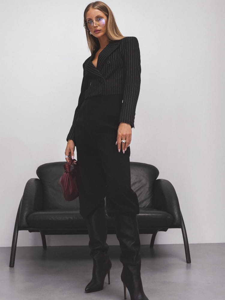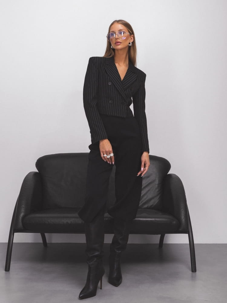 Krótki, nowoczesny krój sprawia, że ta krótka marynarka damska świetnie podkreśla sylwetkę i stanowi modną alternatywę dla klasycznych fasonów.