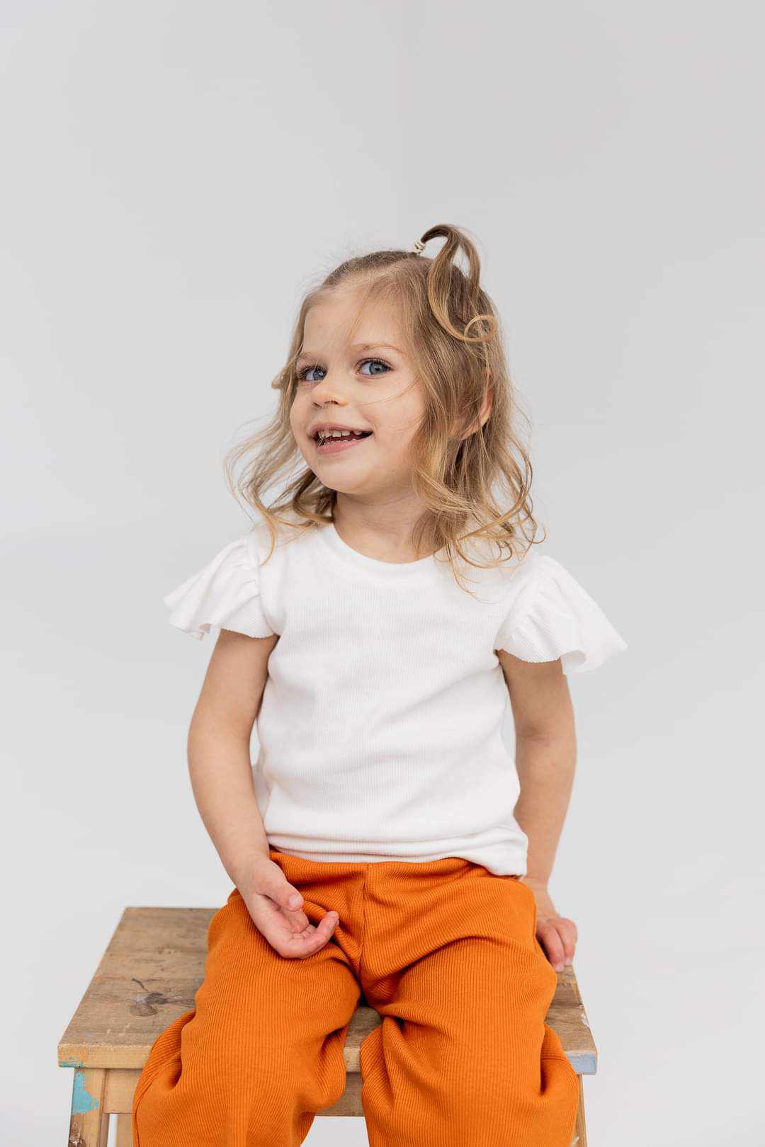 Przedstawiamy uroczy dodatek do garderoby każdej małej damy - biała bluzka z falbankami, idealna na każdą okazję!