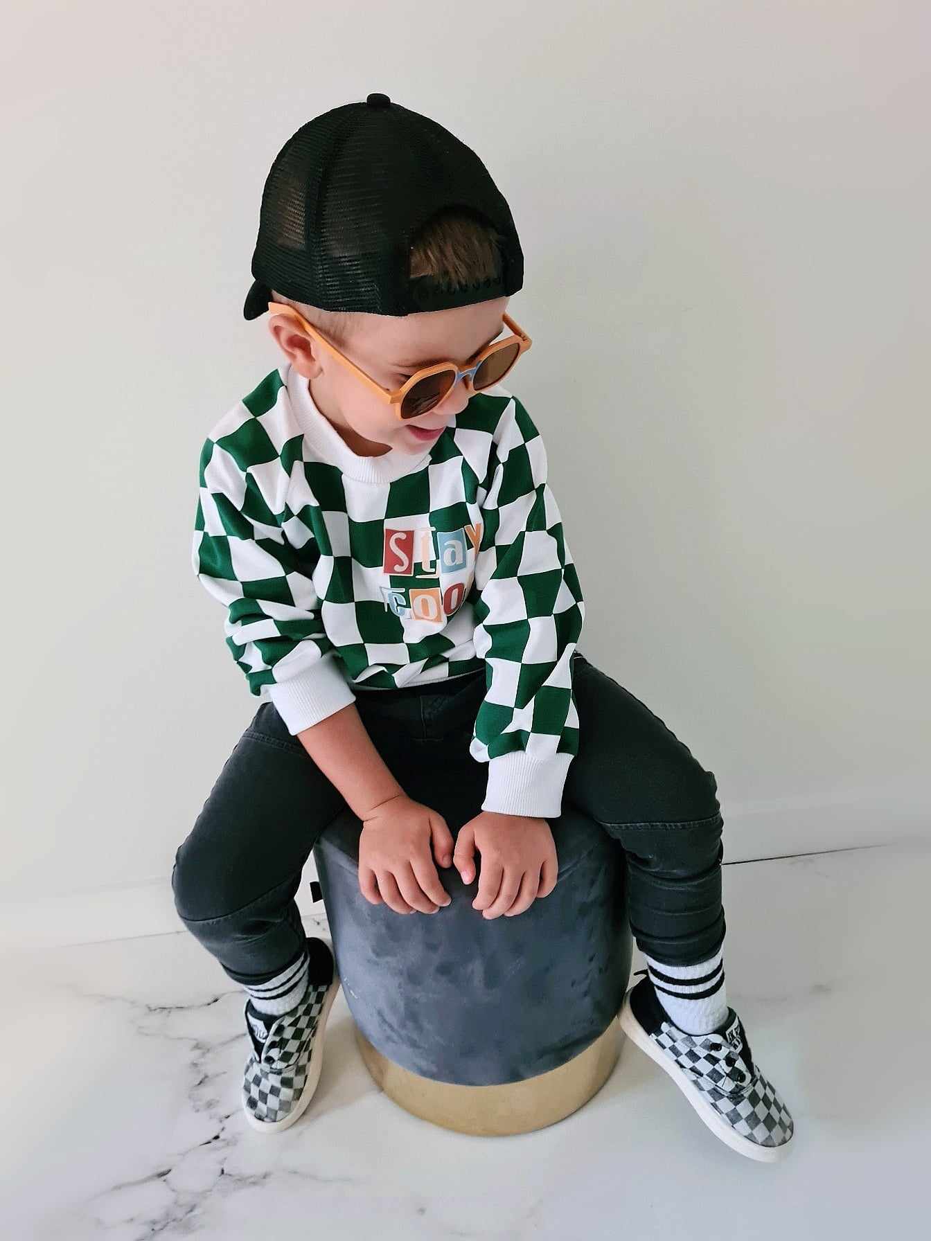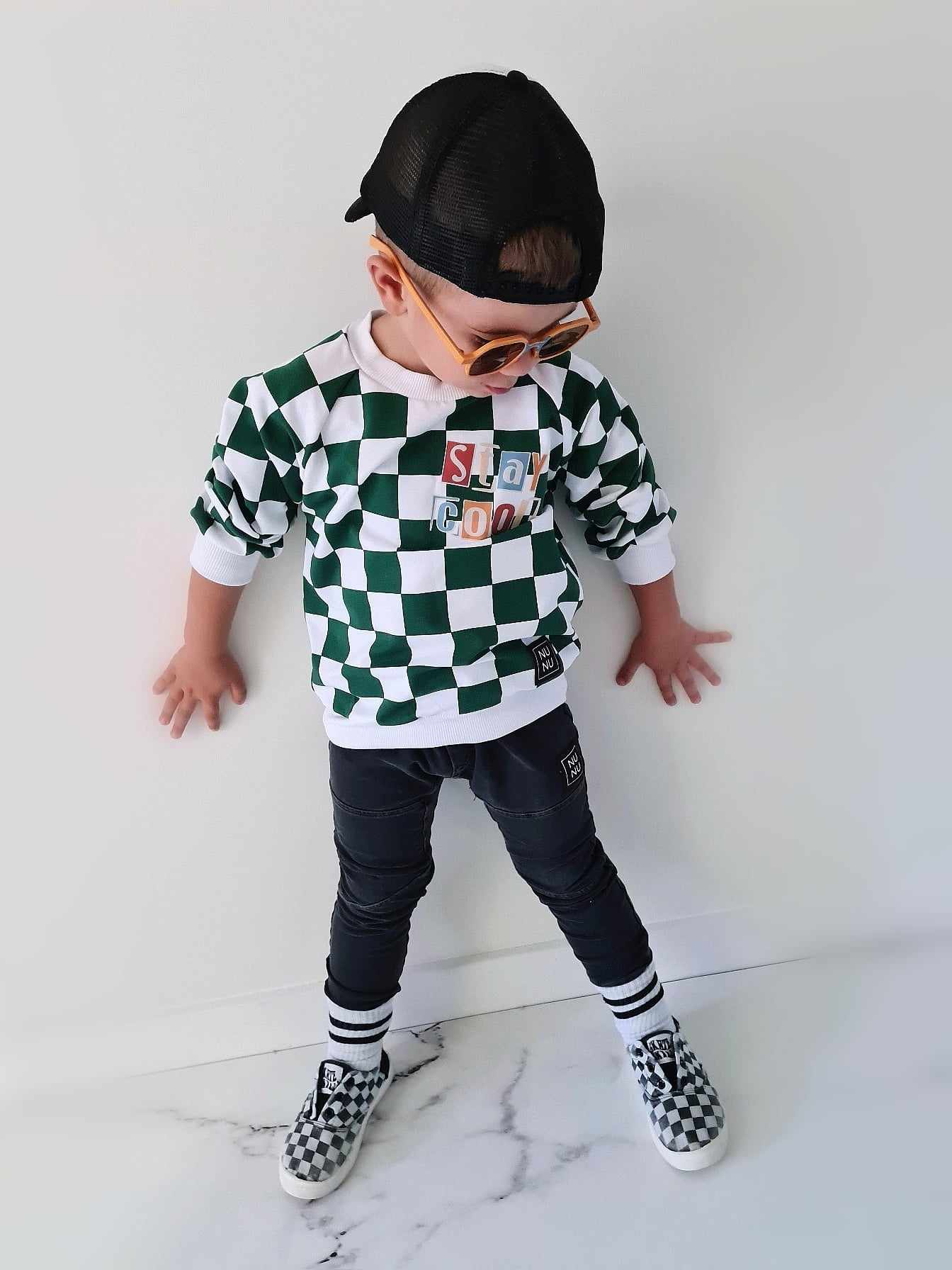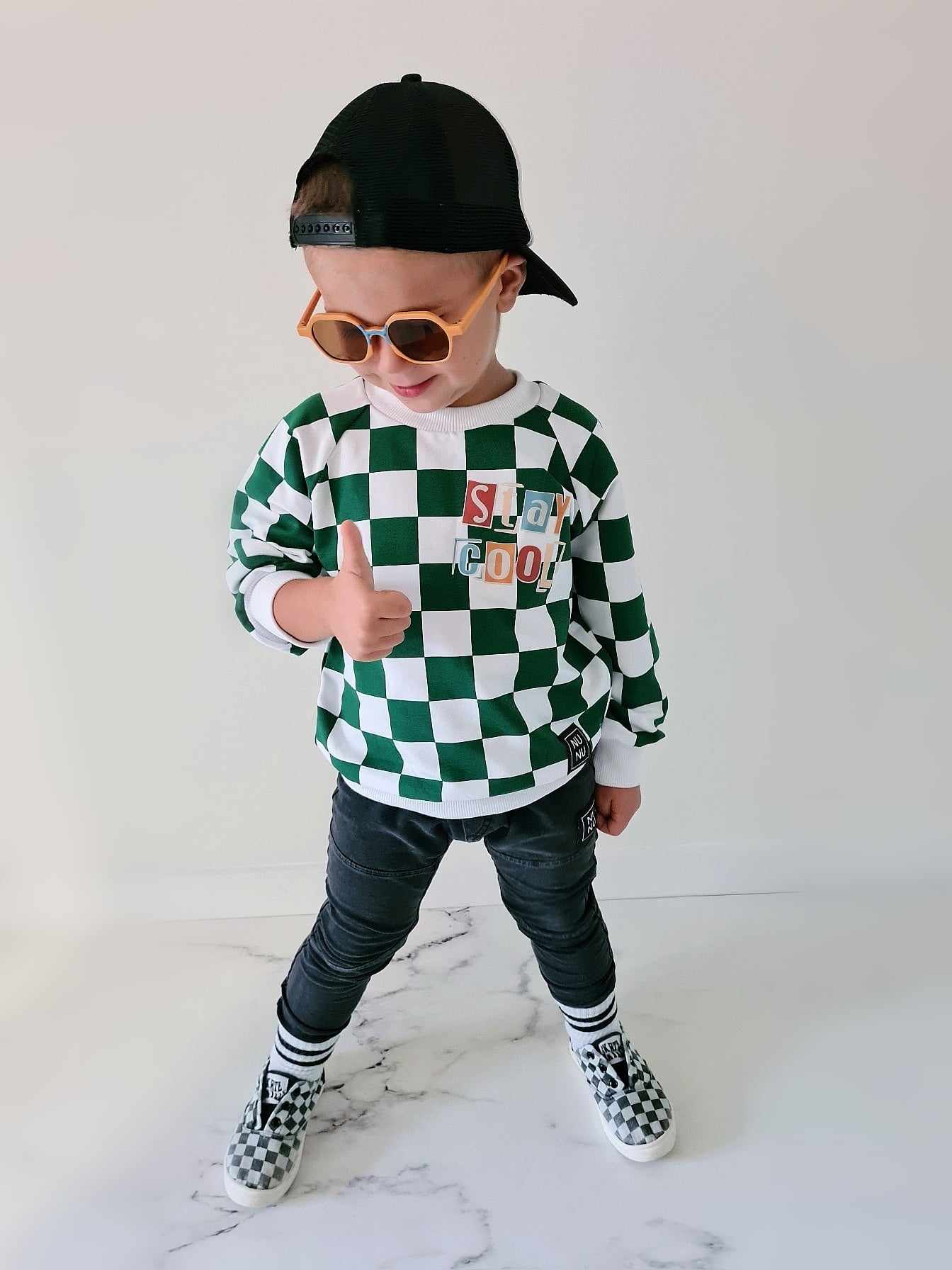 Ta dziecięca bluza w odcieniach bieli i zieleni, to wyjątkowy i stylowy element garderoby dla każdego malucha.