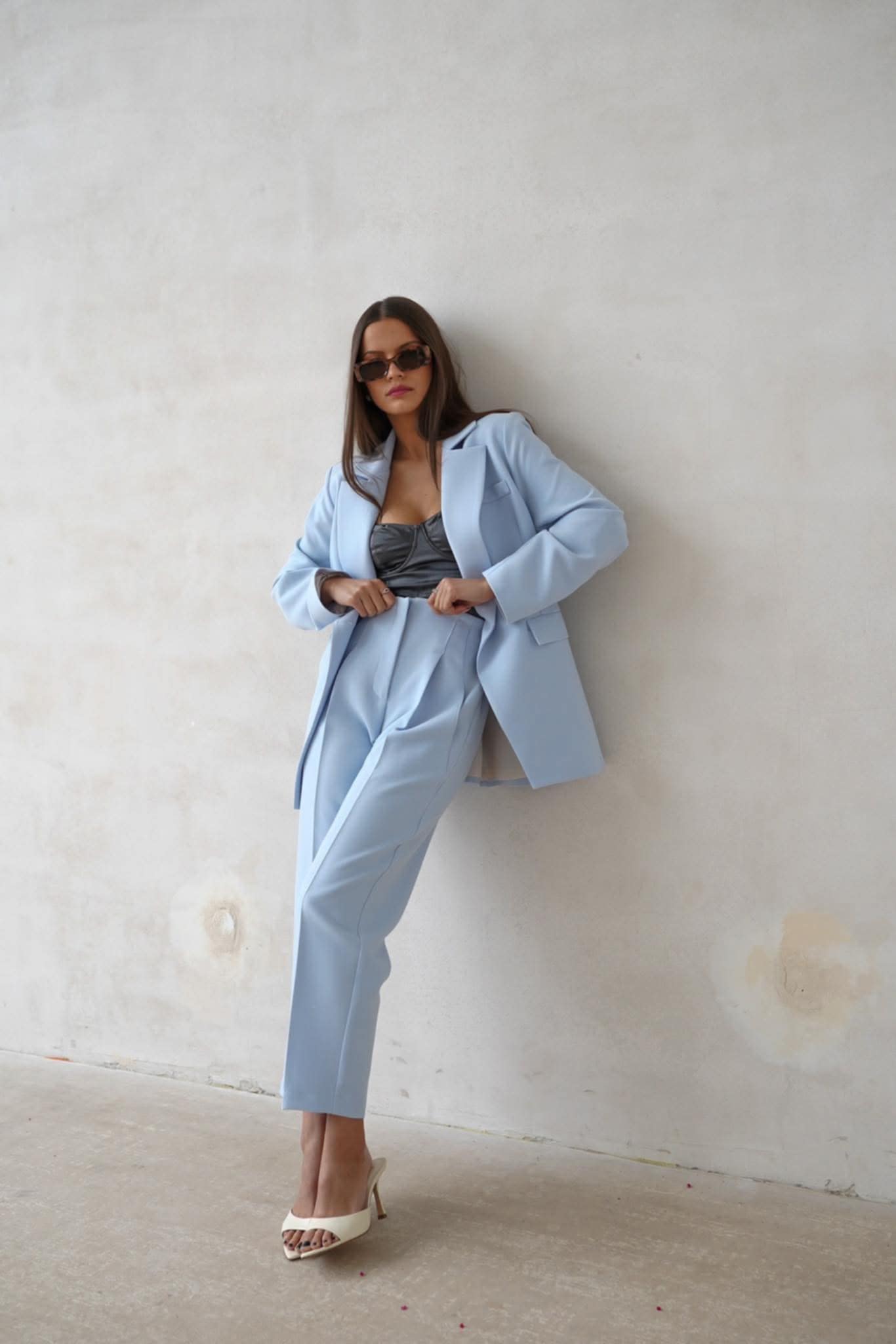 Stylowa marynarka w modnym odcieniu błękitu to idealny wybór do eleganckich i codziennych stylizacji.