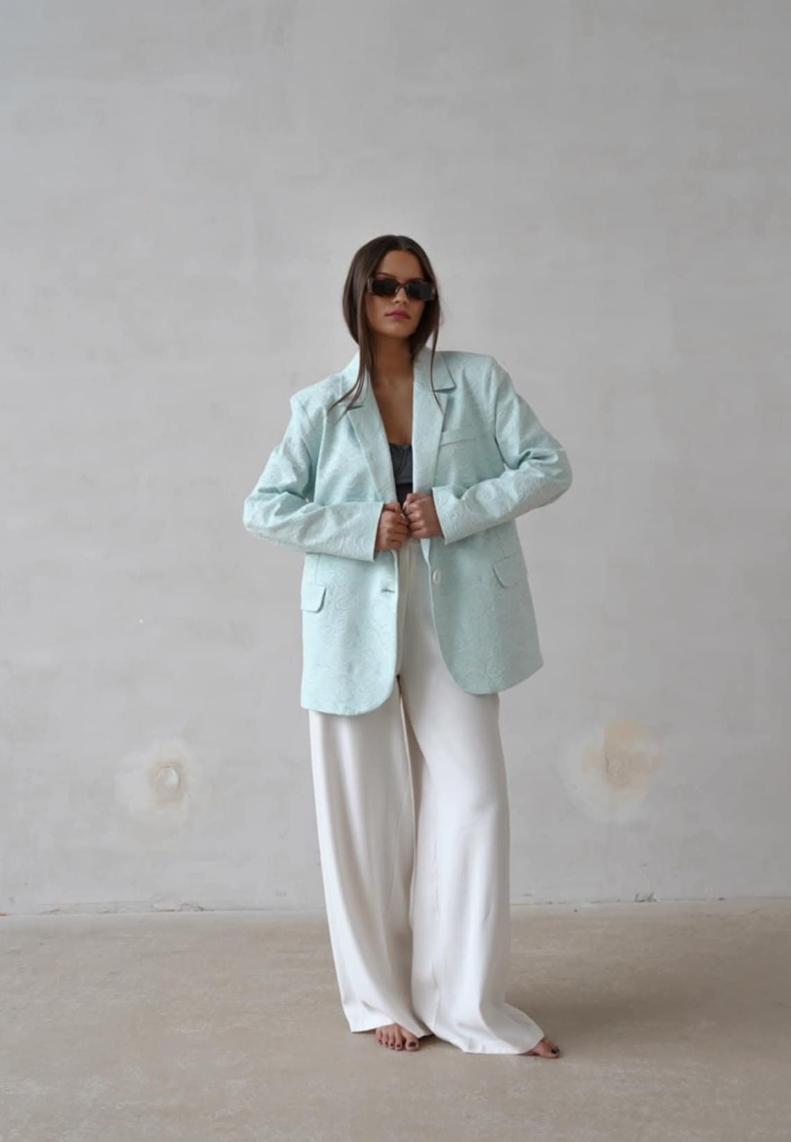 Elegancka marynarka w nowoczesnym wydaniu- miętowa.