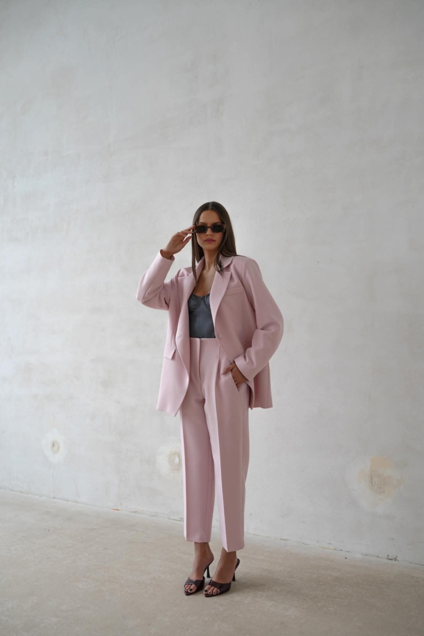 Stylowa marynarka w modnym, pastelowym odcieniu różu to idealny wybór do eleganckich i codziennych stylizacji.
