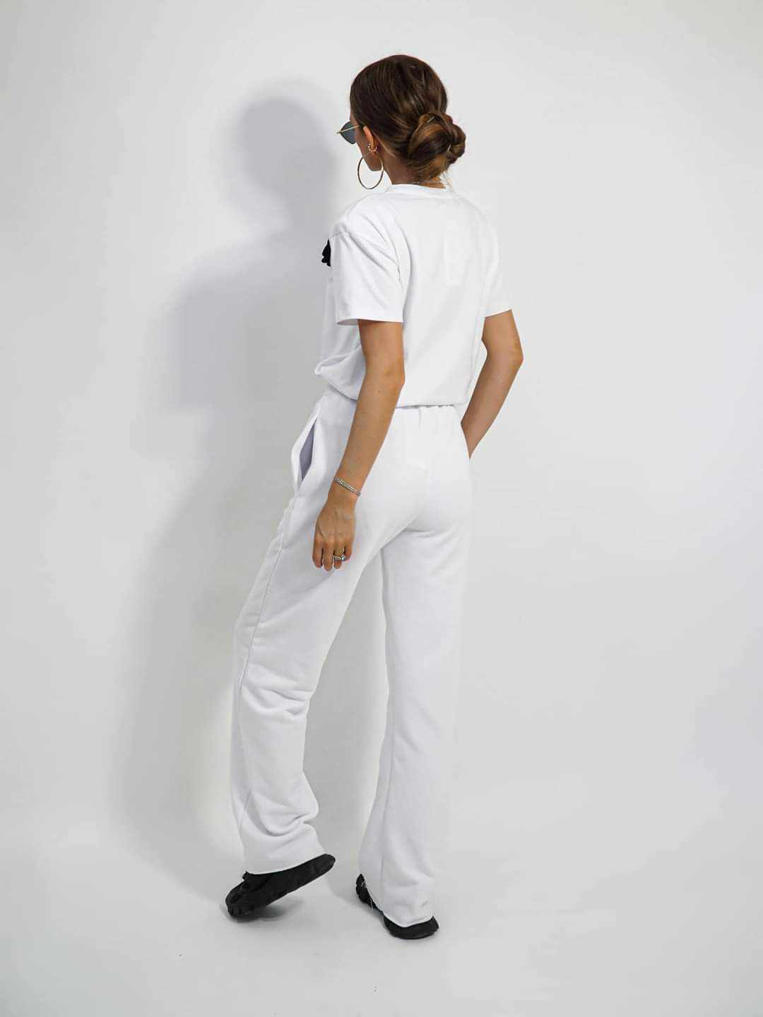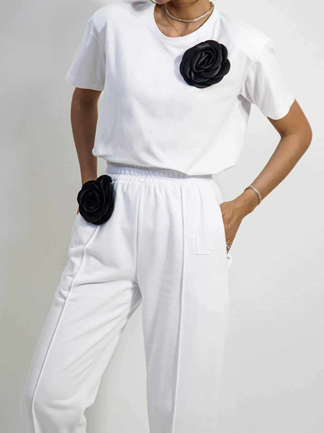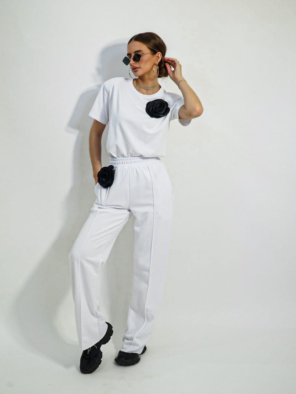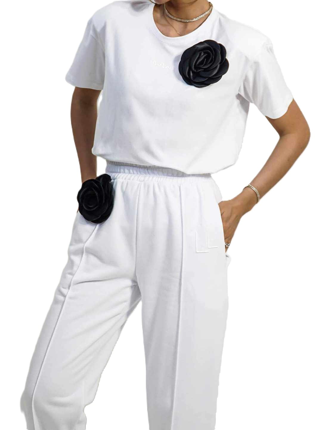Spodnie dresowe damskie z różą białe
