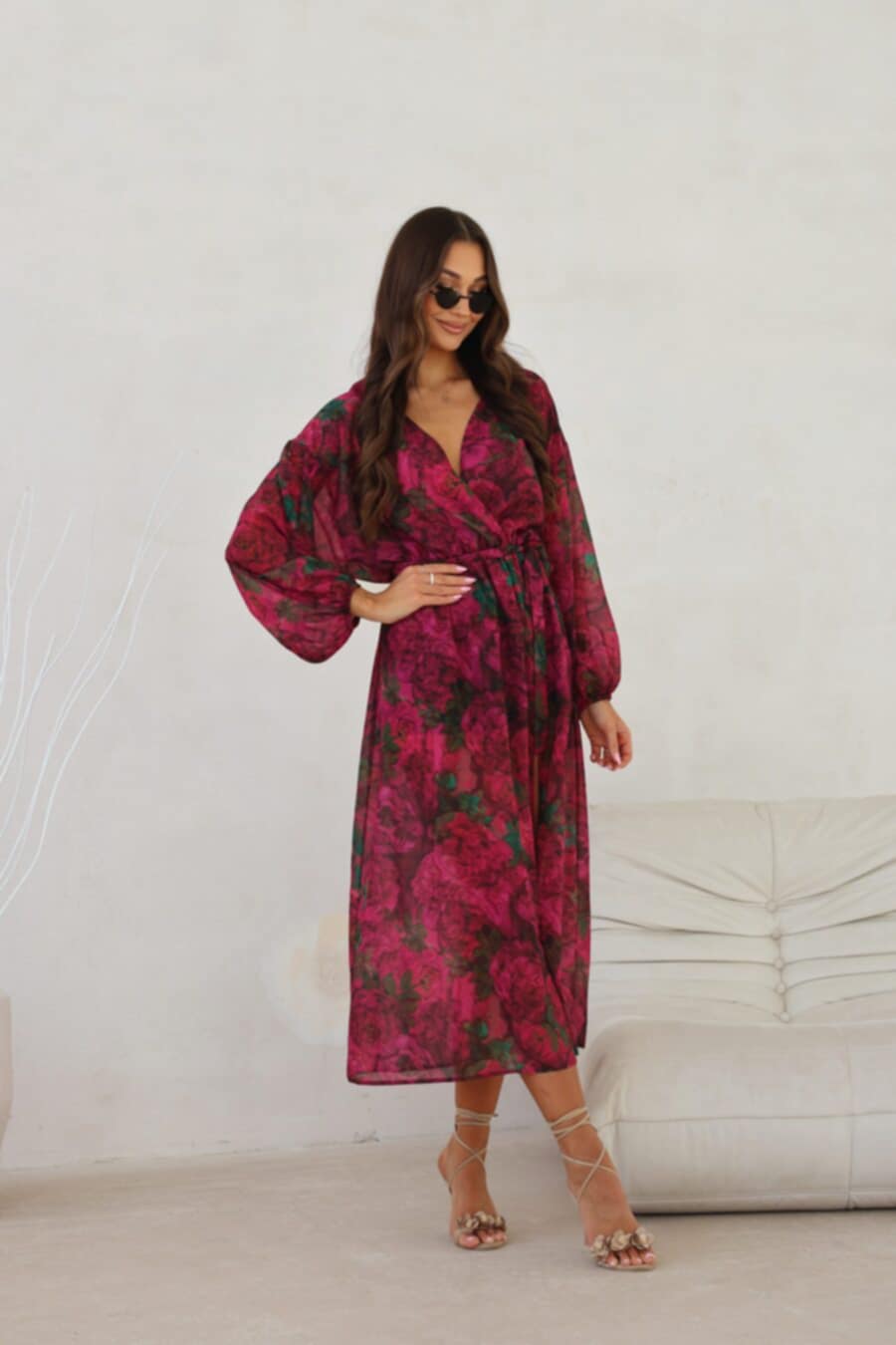 Sukienka damska Amelia-kwiaty fuksja