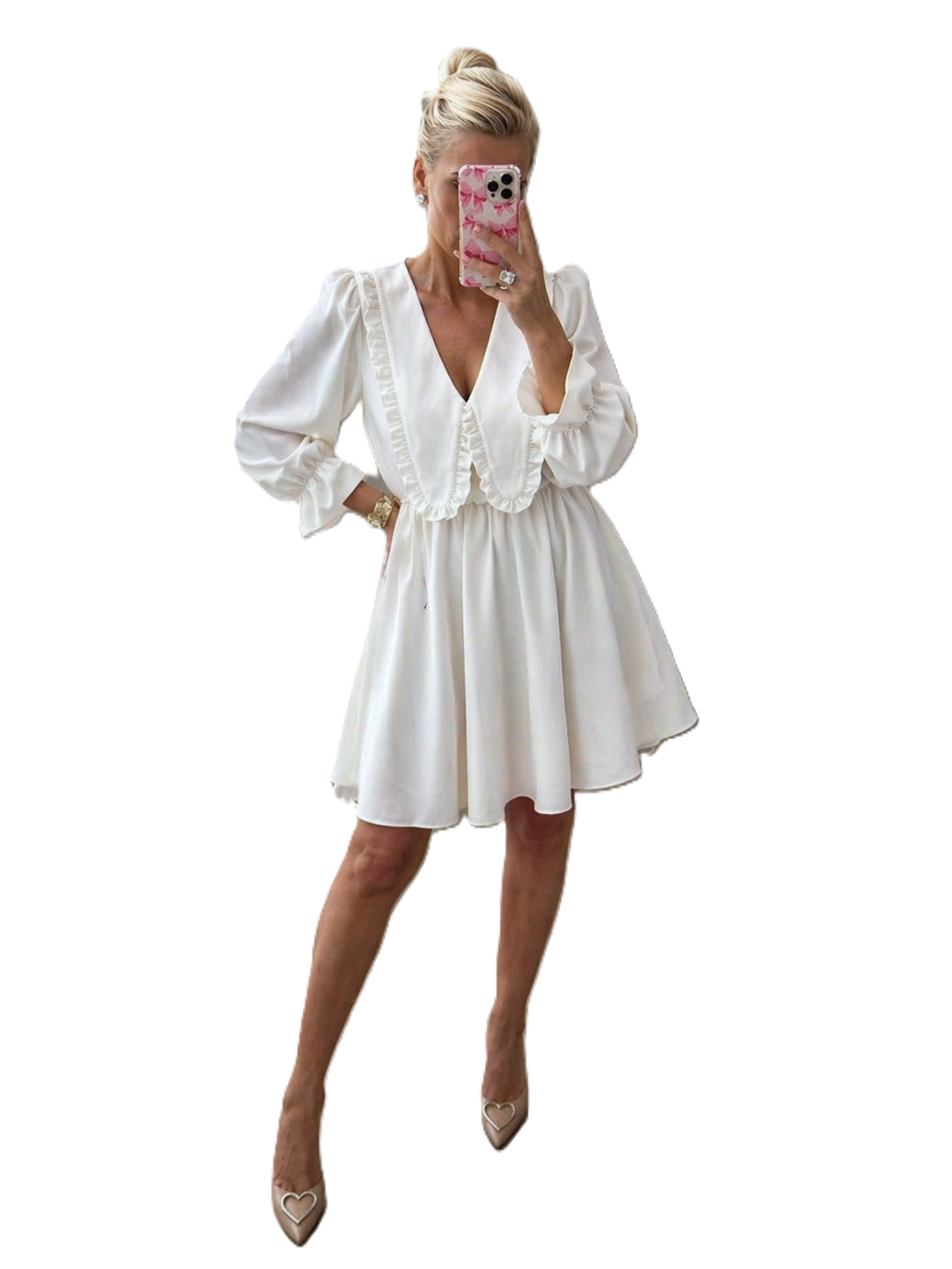 - długie rękawy zakończone falbanką