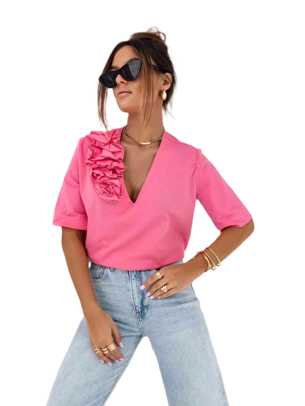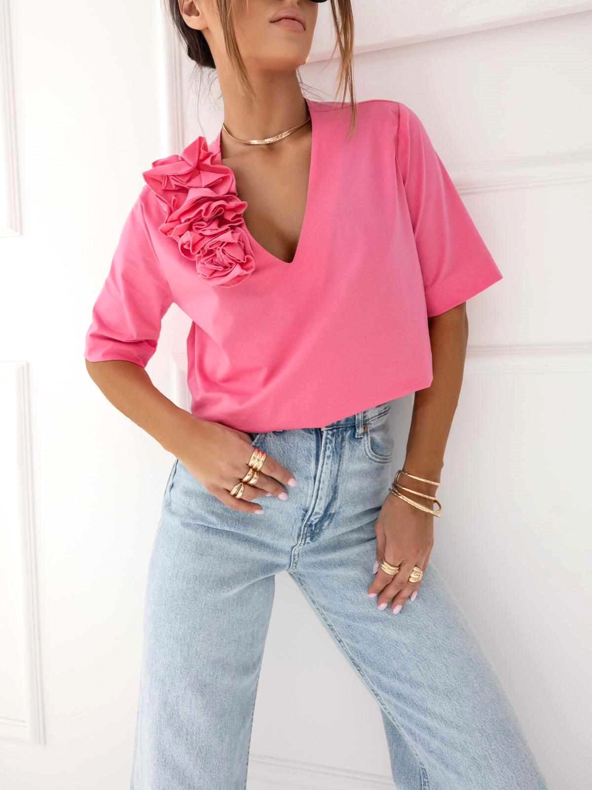 Wyjątkowy t-shirt damski w kolorze różowym .